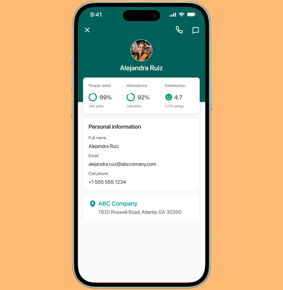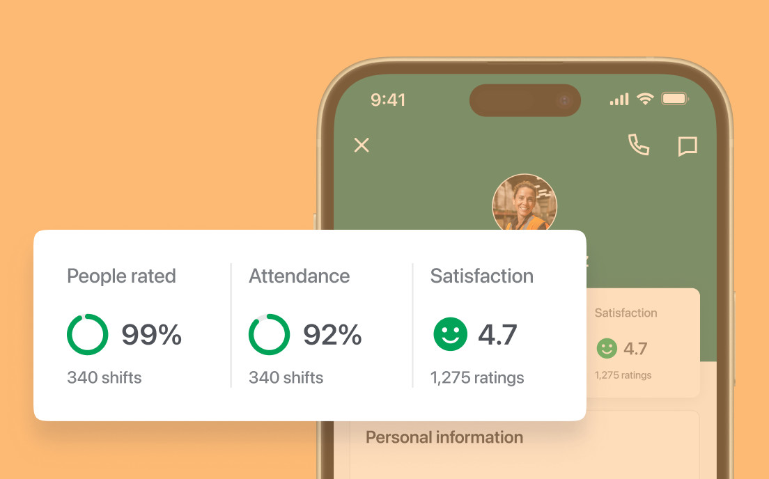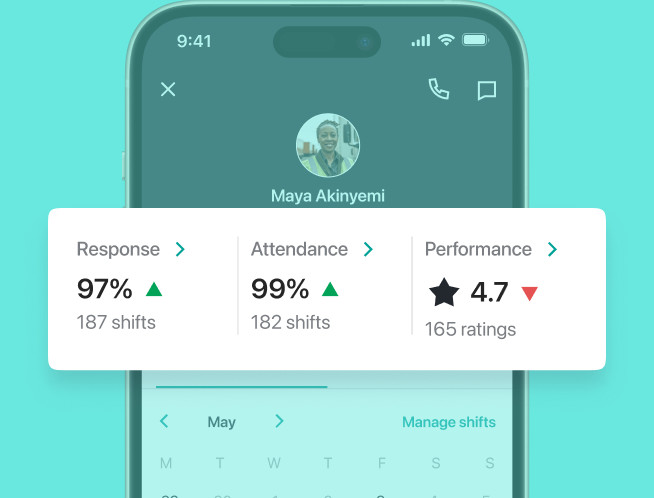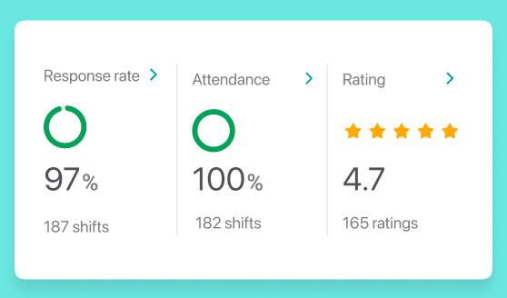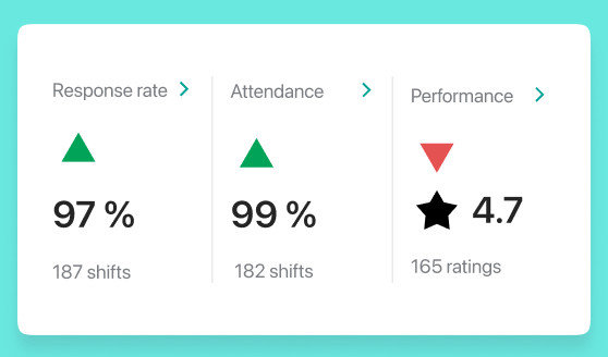 Arbetsledare har tillgång till prestationsindikatorer på sin profil, inklusive hur många personer de har betygsatt, närvaropoäng och nöjdhet hos personer som arbetat under deras skift. Denna insyn, i kombination med praktiska tips och förslag, ger dem möjlighet att förbättra sin prestanda.