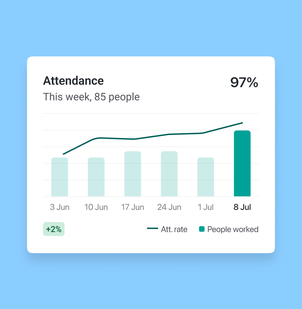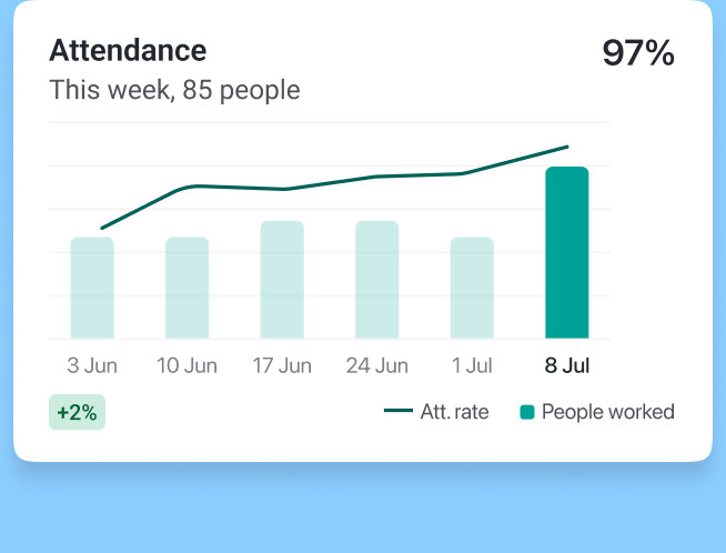 Plattformen tillhandahåller datadrivna insikter som gör det möjligt att fatta välgrundade beslut om fördelning av arbetsstyrkan. Du kan analysera närvaromönster, planera skift mer exakt och snabbt justera bemanningsnivåer baserat på operativa behov, vilket resulterar i ökad effektivitet och kostnadsbesparingar.