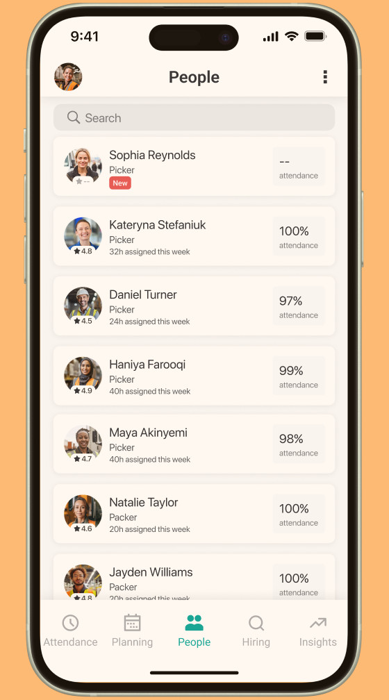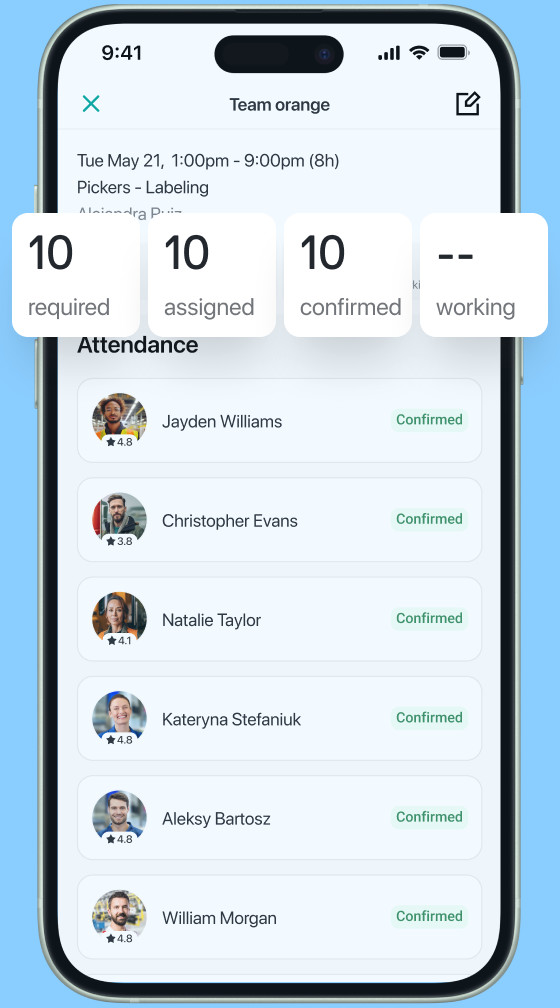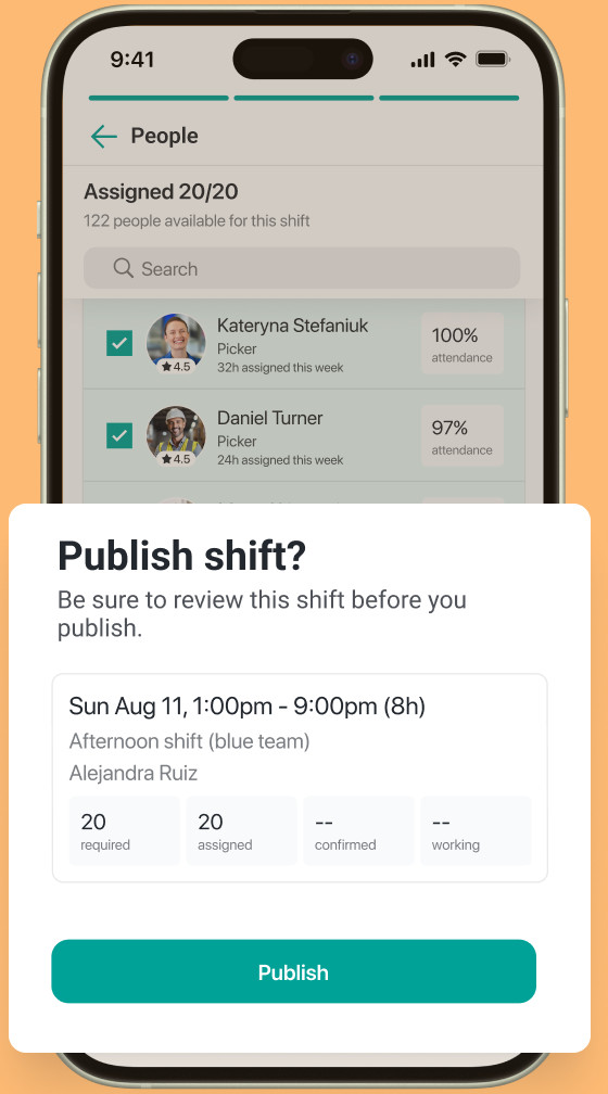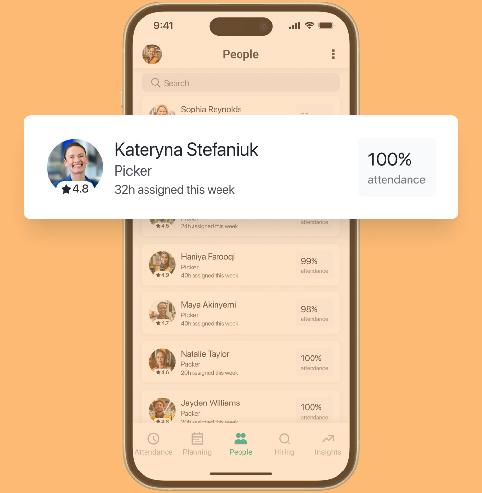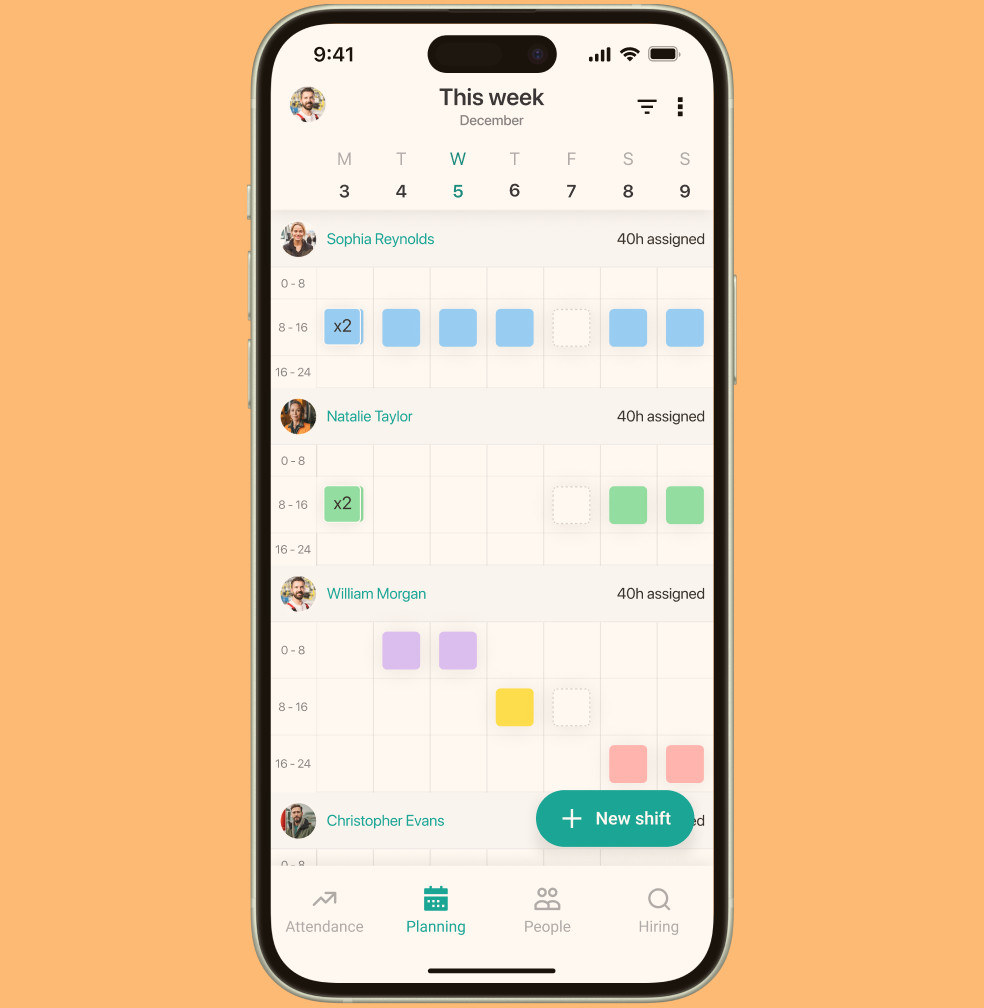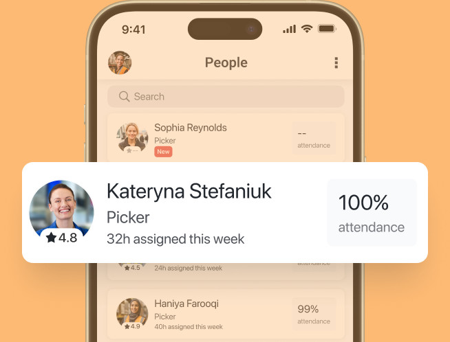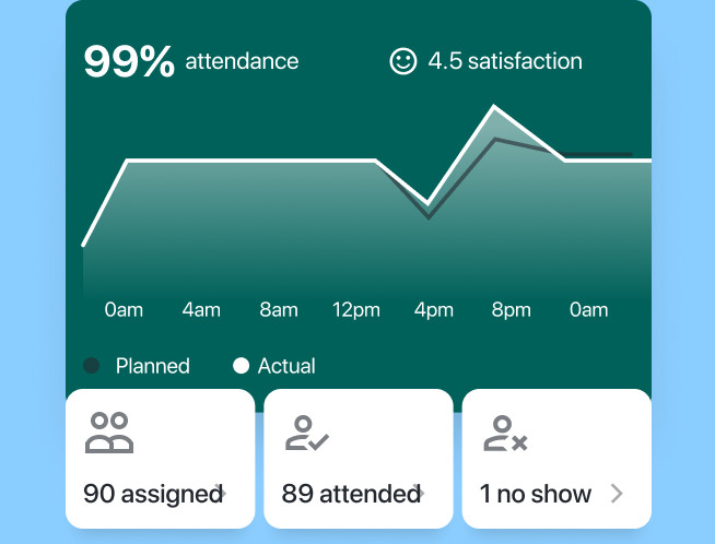 Plattformen gör det enkelt att planera och tilldela skift med sitt intuitiva gränssnitt. Genom att använda data som närvaropoäng, prestationsbetyg och tillgänglighet kan du fatta mer välgrundade beslut om personalfördelning. Detta säkerställer att rätt personer fyller rätt roller, vilket maximerar produktiviteten och minimerar schemaläggningskonflikter.