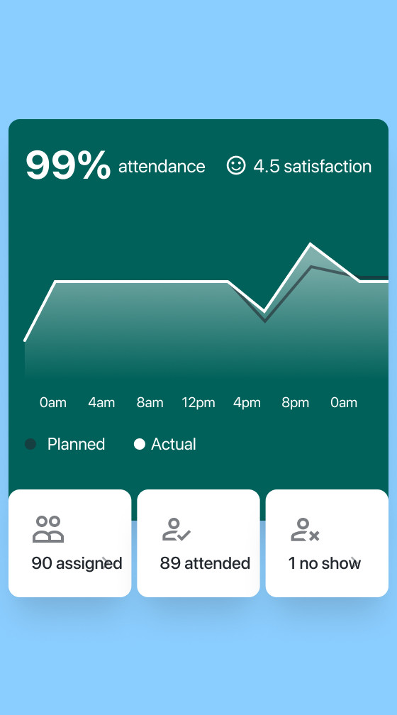 Realtidsdata från betyg och feedback gör att företag kan planera mer exakt och reagera snabbt på förändringar. Denna insyn och kontroll hjälper till att optimera personalstyrkan, säkerställa efterlevnad och upprätthålla en höga prestanda.