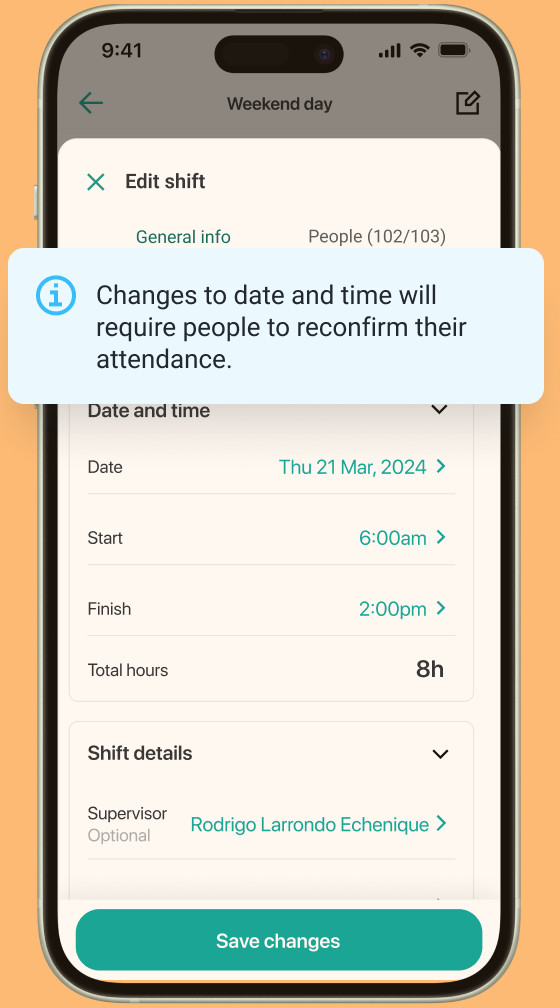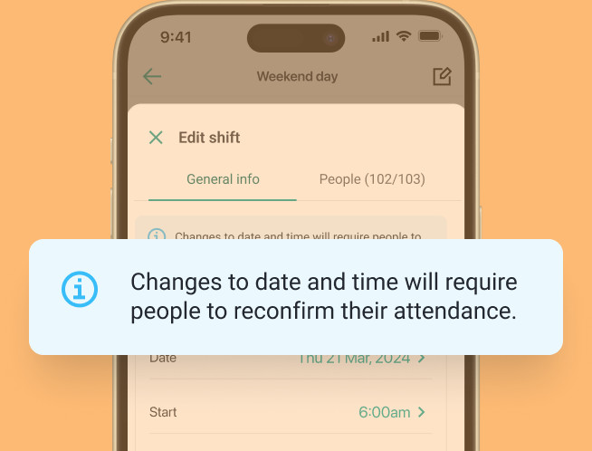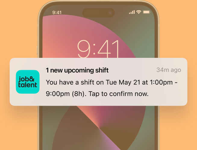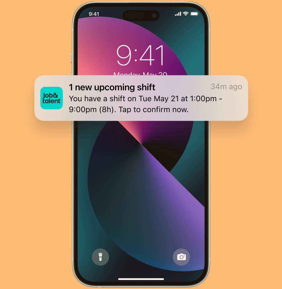 Vi skickar omedelbart push-meddelanden och ber dem svara, vilket innebär att du inom några minuter, via din app, vet att skiftet är bemannat.
