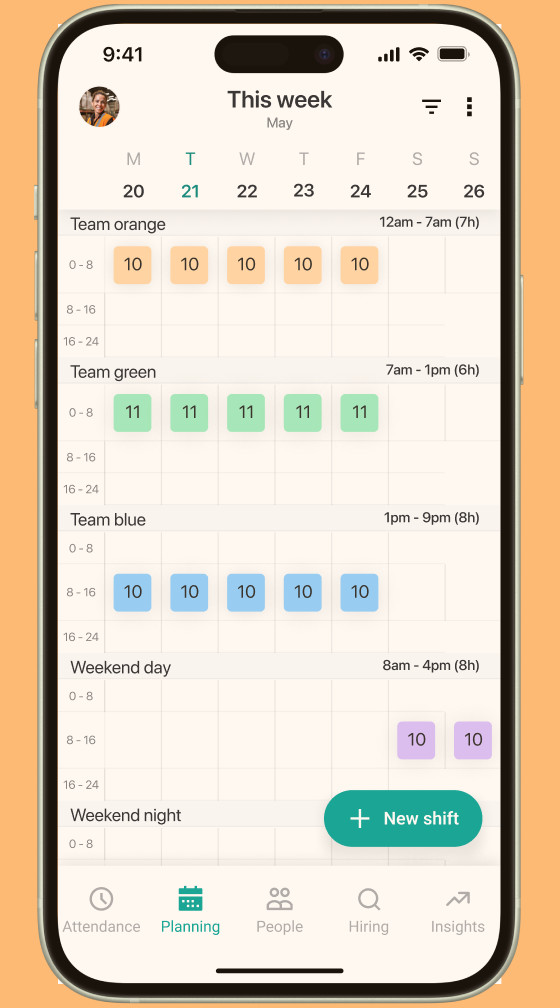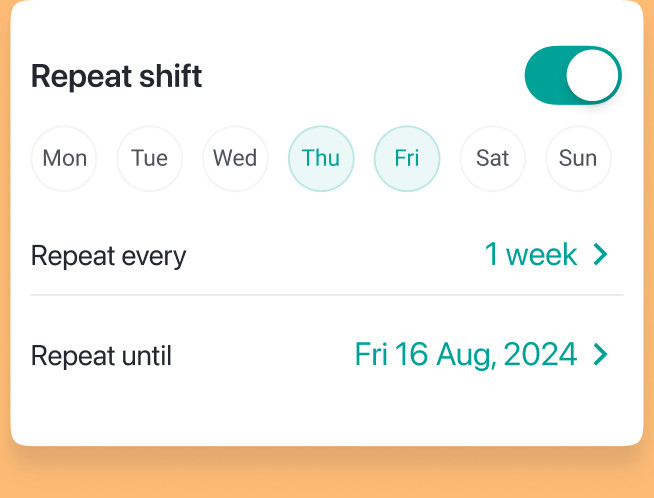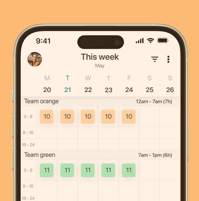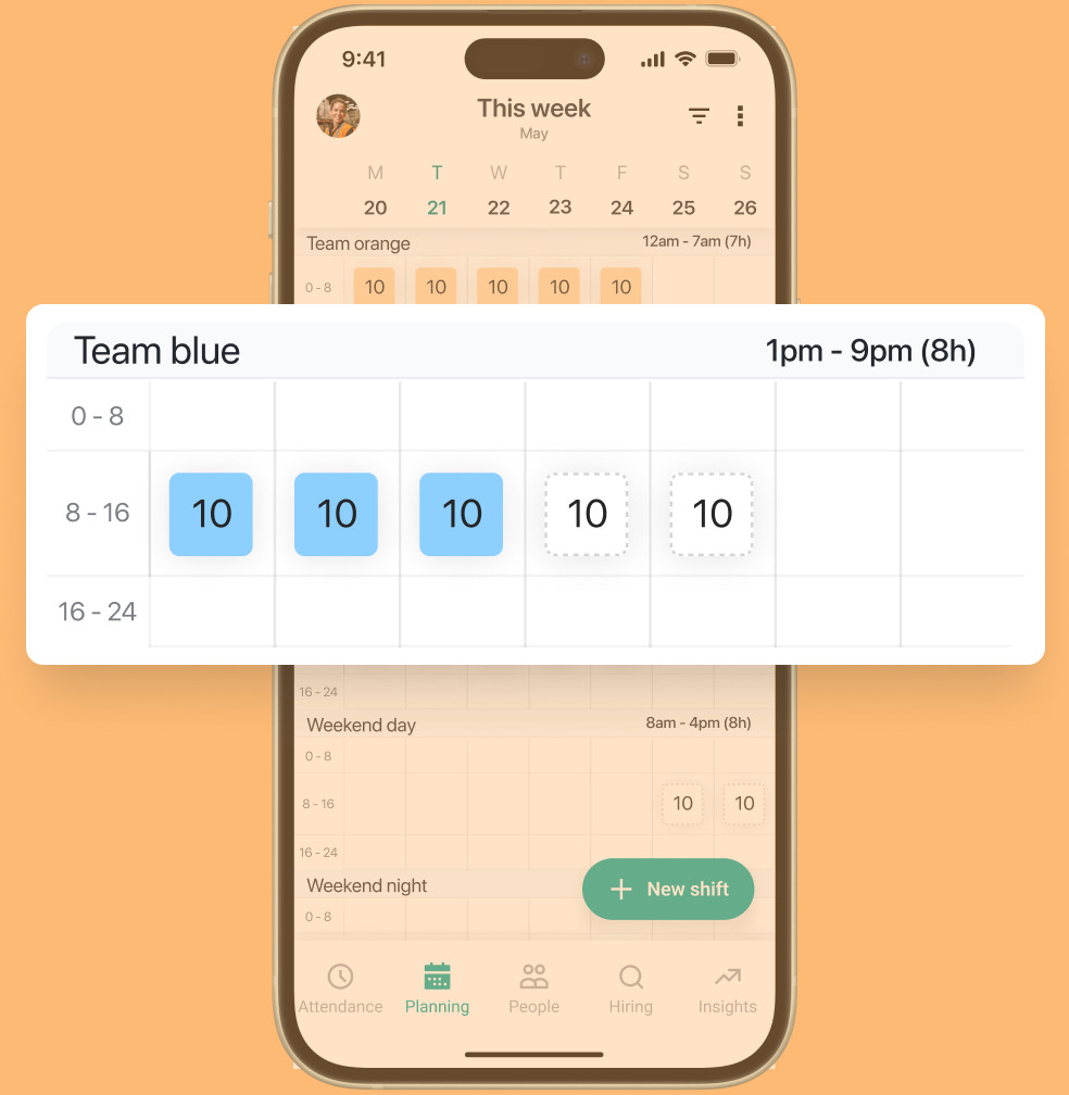 Planeringsfunktionen automatiserar skiftschemaläggning genom att låta dig enkelt skapa och hantera både enstaka och återkommande skift.