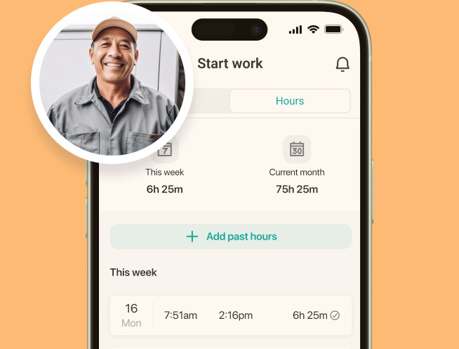 Ingen tråkig upplärning. Ingen klumpig maskin att frakta och installera. Registrera dig, ladda ner appen och du är redo att börja tidrapportera inom loppet av minuter.