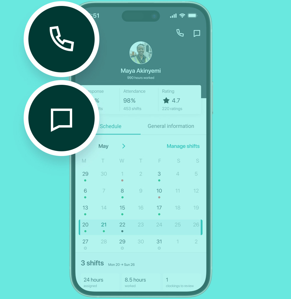 I Job&Talent Business-appen kan du omedelbart se vilka som har bekräftat att de kommer att jobba inför ett skift, vilka som kommer att frånvara, samt tidpunkterna medarbetarna har stämplat in och ut.